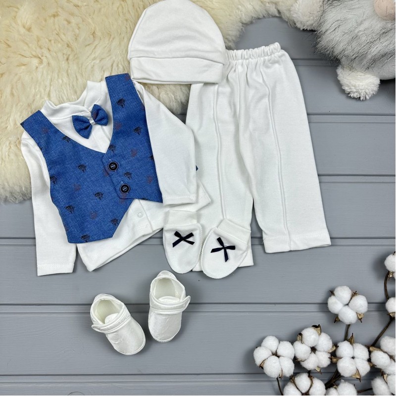 ✂️Джентельменський набір з жилеткою. У комплект входить жилет, кофточка на кнопках, штанці, шапочка, нецарапки та пінетки